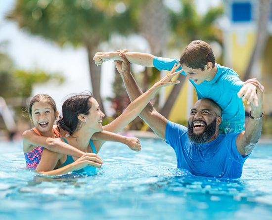 Happy vibes rule here! Kids of all ages can laugh, splash and play safely at the splash pad, sit under the chickee hut, play in the games area and sit around the fire pits. The only thing missing is you!